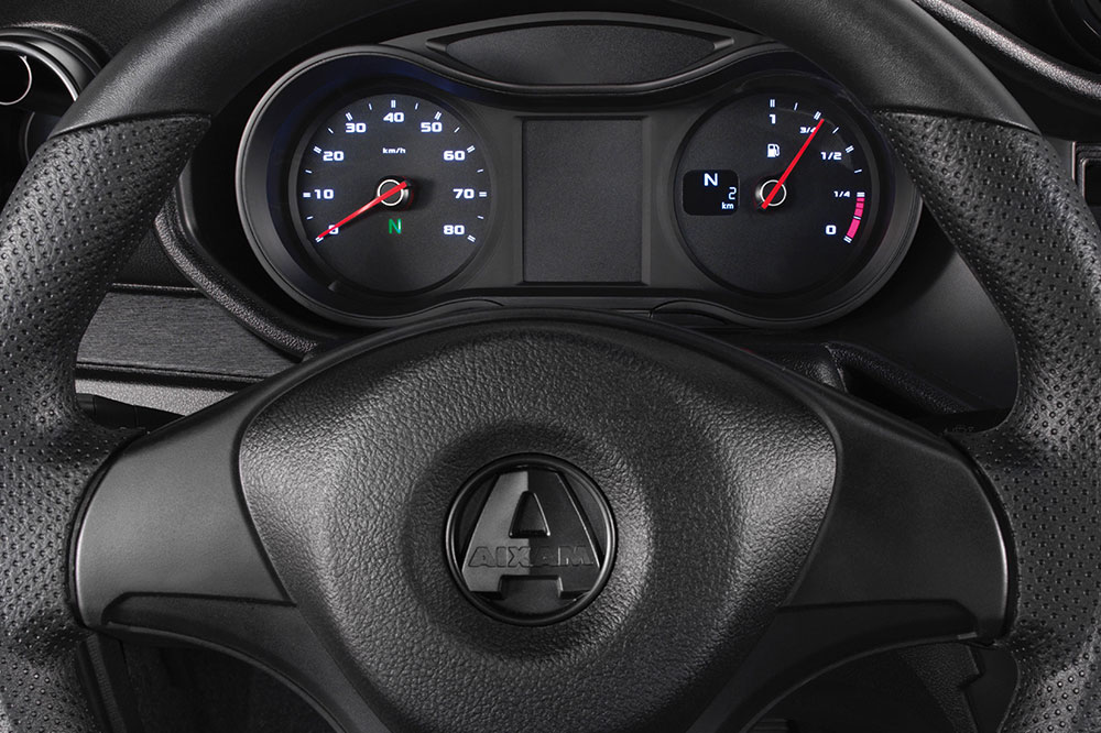Anzeige Schaltposition D-N-R, Gesamt- und Tageskilometerzähler digital, Inspektionsanzeige, Kraftstoffanzeige Typ Balkenanzeige mit Kontrollleuchte, Tachohintergrund, cremefarben, dimmbar, Warnleuchten für: Ladezustand der Batterien, Bremsflüssigkeitsstand - Handbremse, Warnton Bremsbelagverschleiß, Öldruck, Wassertemperatur, Kontrollleuchten für: Blinker rechts und links, Standlicht, Nebelschlussleuchten, Abblendlicht, Warnblinker, Fernlicht, Vorglühen Dieselmotor, Neutralstellung Gang