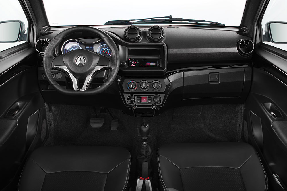Ablagefach in Türen & Mittelkonsole, Armaturenbrett in moderner Automobil-Spritzgusstechnik, Handschuhfach mit Münz- und Getränkehalter, Dachhimmel in Stoff, Gepäckraumabdeckung und Gepäckstopp, Haltegriff Fahrer- und Beifahrerseite, Innenbeleuchtung LED mit Zeitverzögerung beim Ausschalten, Kofferraum- und Radlaufverkleidung in Stoff, Kopfstützen in Höhe einstellbar, Luftausströmer einstell- und regulierbar, mittig, Rückspiegel mit Abblendfunktion, Sicherheitsgurte Automatik, Schalldämmung Fahrgastzelle Stufe 1, Schalldämmung Motorraum Stufe 2, Sitze in Kunstleder schwarz, Sitz Fahrerseite in Längsrichtung einstellbar, Sitze Fahrer und Beifahrer Rückenlehne einstellbar, Sitzgestell Verkleidung seitlich, Sonnenblende mit Schminkspiegel Fahrer und Beifahrer