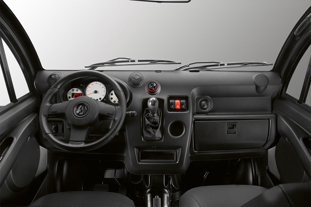 Aussenspiegel links und rechts (von innen einstellbar), Ersatzschlüssel, Fußmatten aus Gummi, Handschuhfach mit Münz- und Getränkehalter, Heckfenster in der Kabine