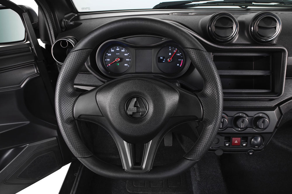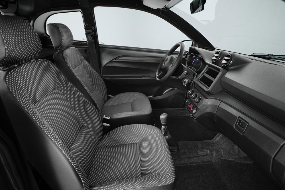 Ablagefach in Türen und Mittelkonsole, Armaturenbrett in moderner Automobil-Spritzgusstechnik, Handschuhfach mit Münz- und Getränkehalter, Gepäcknetz im Kofferraum, herausnehmbar, Gepäckraumabdeckung und Gepäckstopp, Haltegriff Beifahrerseite, Innenbeleuchtung LED beim Ausschalten, Kopfstützen in Höhe einstellbar, Luftausströmer einstell- und regulierbar, mittig, Rückspiegel mit Abblendfunktion, Sicherheitsgurte Automatik, Schalldämmung Fahrgastzelle Stufe 1, Sitze in Stoff, grau-meliert, Sitz Fahrer in Längsrichtung und Rückenlehne einstellbar, Sitz Beifahrer nur Rückenlehne einstellbar, Sonnenblende mit Schminkspiegel Fahrer und Beifahrer, 12 V Steckdose (bei Tablet Radio ersetzt durch USB Anschluss)